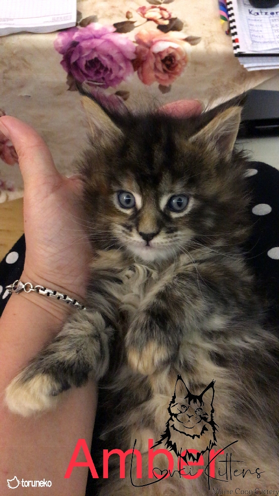 Amber Lovki Kittens ♀ black classic torbie / white (f 09 22)KociakiMioty A - ZMioty A - FMiot AAmber Lovki Kittens ♀ black classic torbie / white (f 09 22)